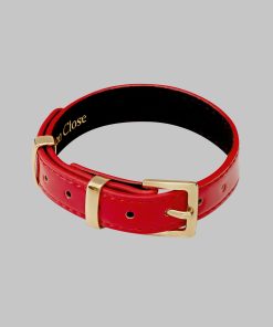 La Liaison is an anklet designed as a jewel for the skin. Its glossy red patent exterior contrasts with a soft black suede-like lining, gentle against the skin. The golden signature logo is discreetly placed on the inside for an intimate touch.
