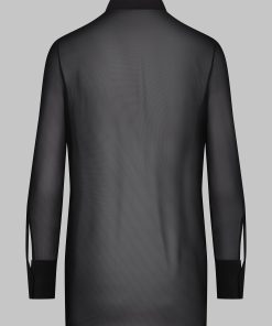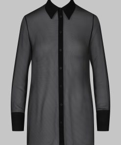 The sheer long shirt features a straight cut and French collar. Made from ultra-sheer, light and floaty chiffon, this daring piece is a real eye-catcher. The button placket and cuffs of this shirt are embellished with Maison Close engraved buttons, adding a custom touch.