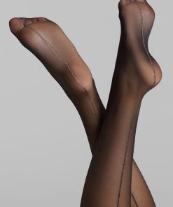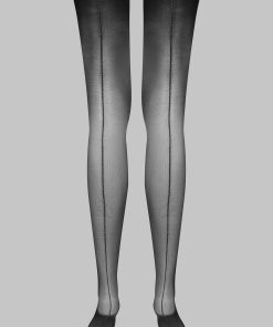 Maison Close Women’s Les Coquetteries Cut And Curled Lurex Back Seamed Stockings 20d – Black/silver | Black & Silver