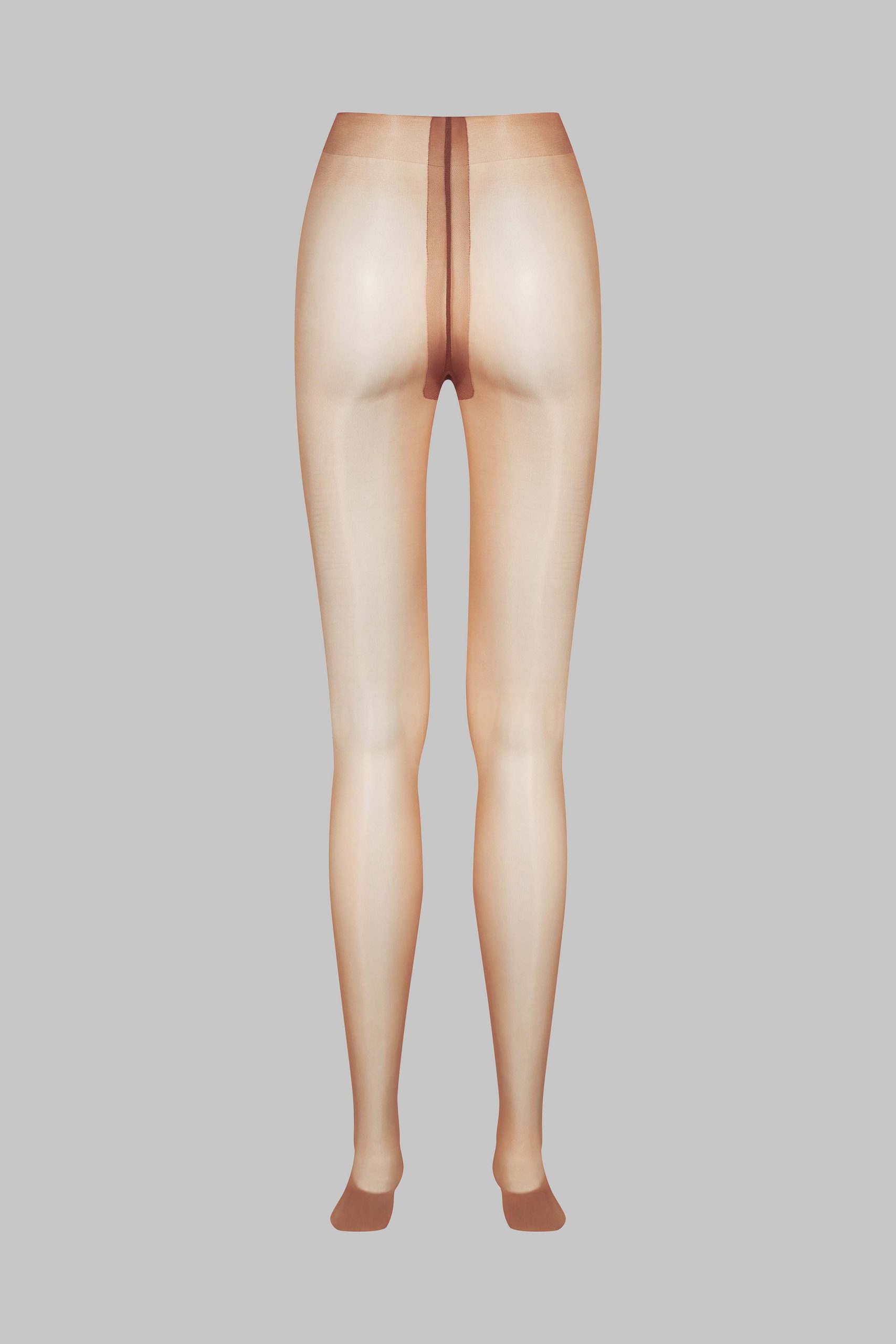 High-waisted satin-finish tights made of a very fine delicate 10 denier voile. Oiled effect for a feeling of natural moisturisation. High waist and comfort gusset on the crotch. Shaped heels so they fit the foot better.