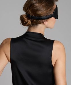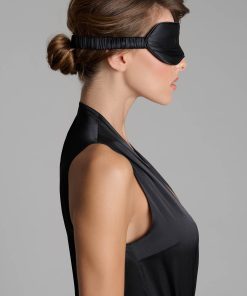 Fully opaque to stimulate the rest of your senses. An elasticated strap covered in gathered silk holds it on securely. A one-size-fits-all accessory that adapts gracefully to all faces.