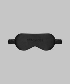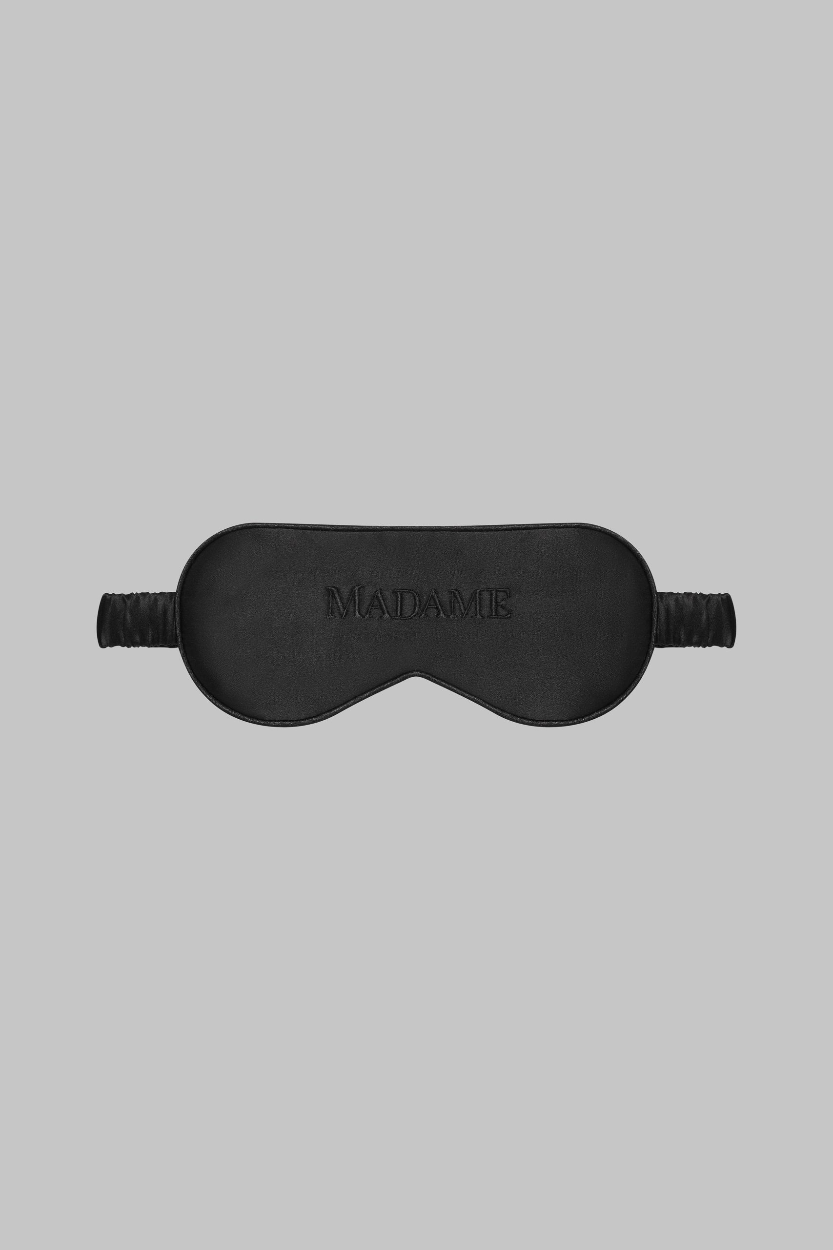 Natural silk-covered night mask with tone-on-tone embroidered Madame.