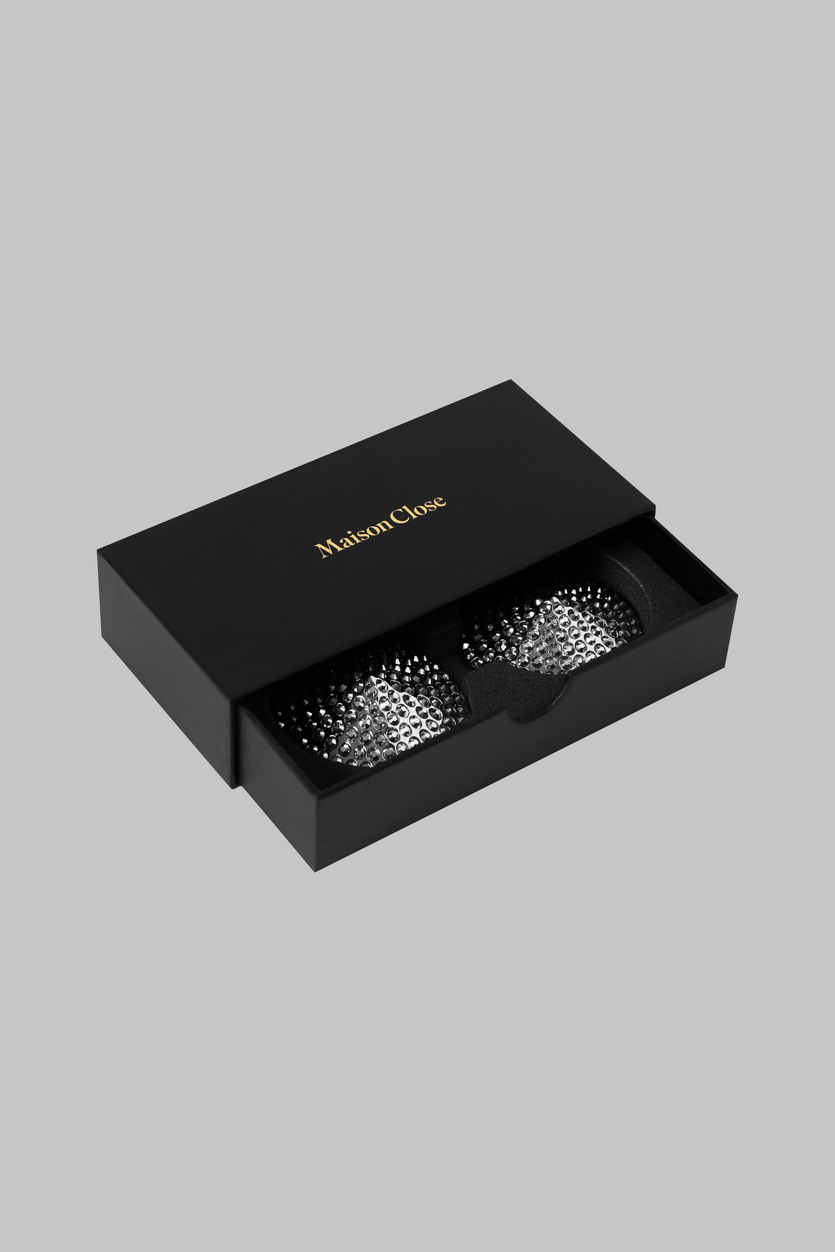 Metal nipple pasties embellished with tone-on-tone rhinestones are essential accessories for accentuating your breasts and embracing your fetish-chic style. Wear with cupless bras or sheer pieces. Self-adhesive and reusable, they stay in place throughout the evening.