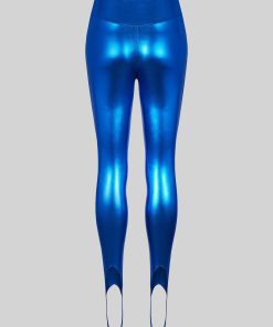 Leggings in microfiber with metallic foil application. Fitted and high-rise featuring a sheath waistband without visible seams.