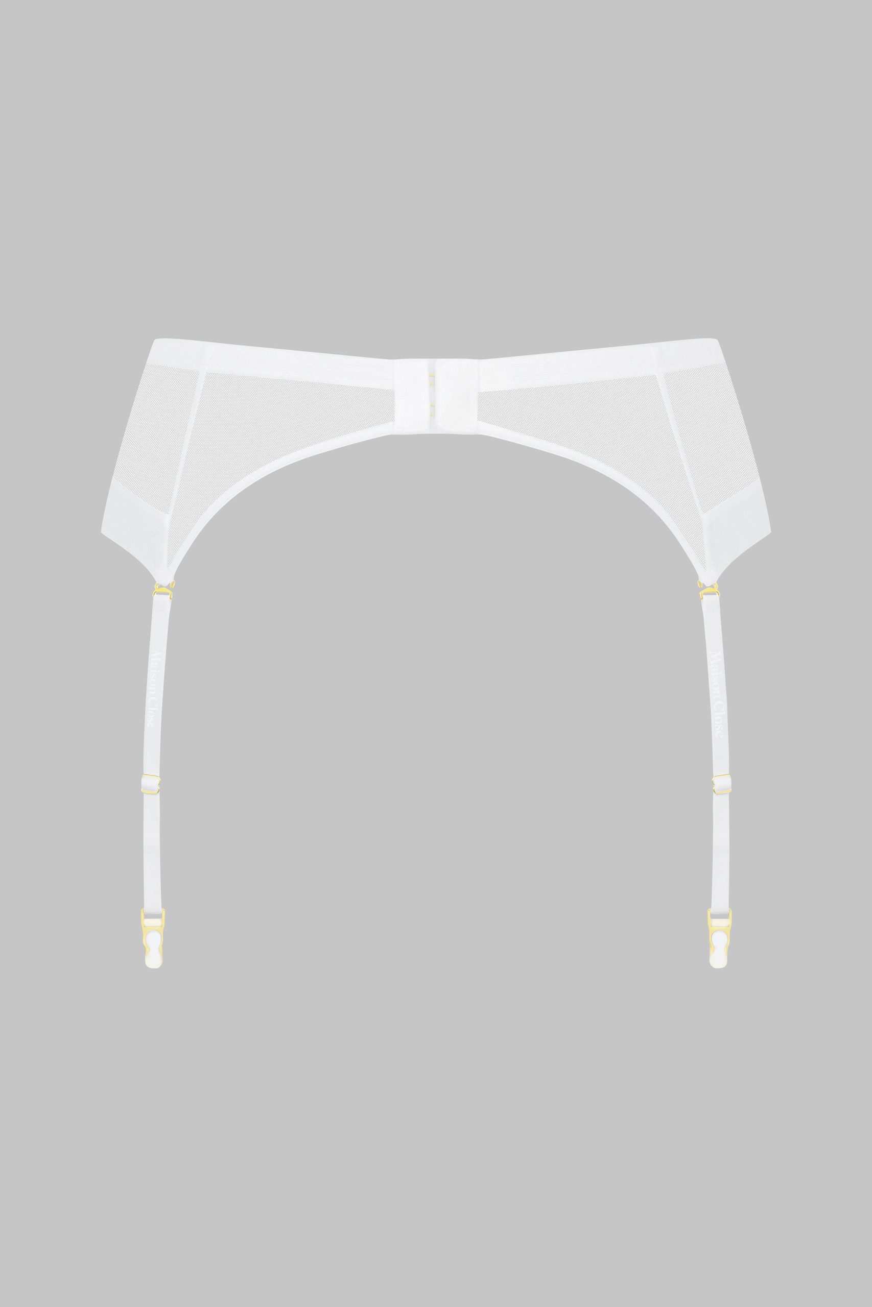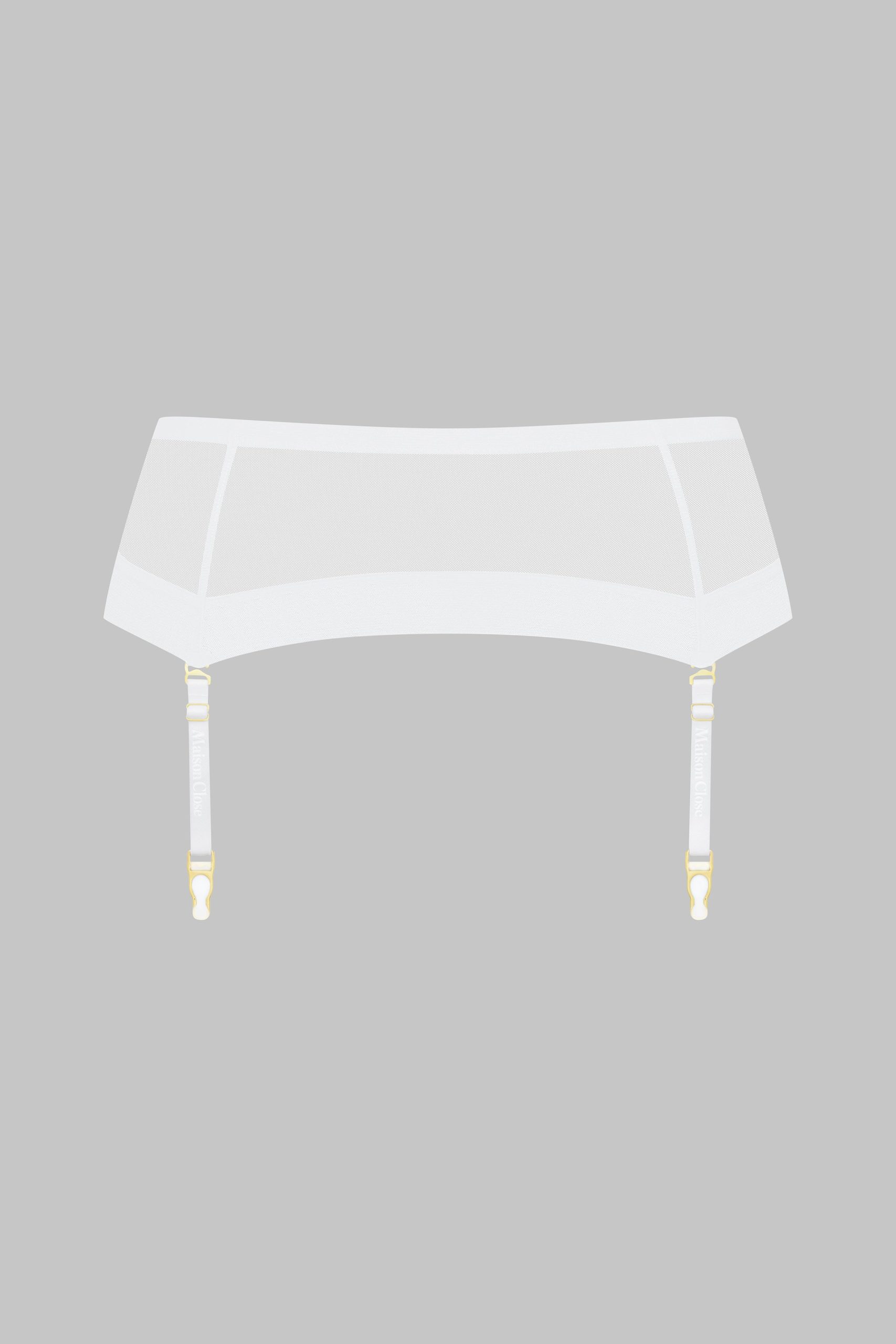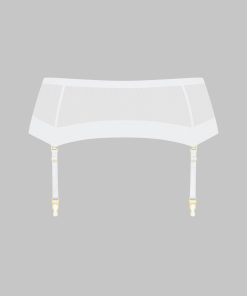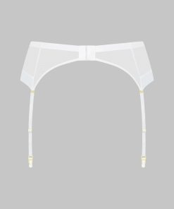 This white colour suspender belt features soft mesh with a sheer iridescent appearance. Clip fastening on the back.