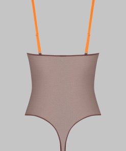 This nude colour thong body features soft mesh with a sheer iridescent appearance.