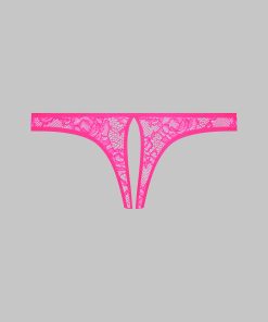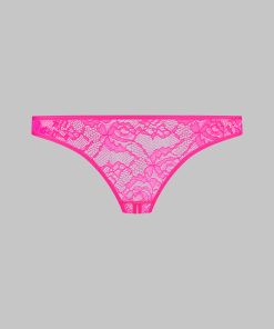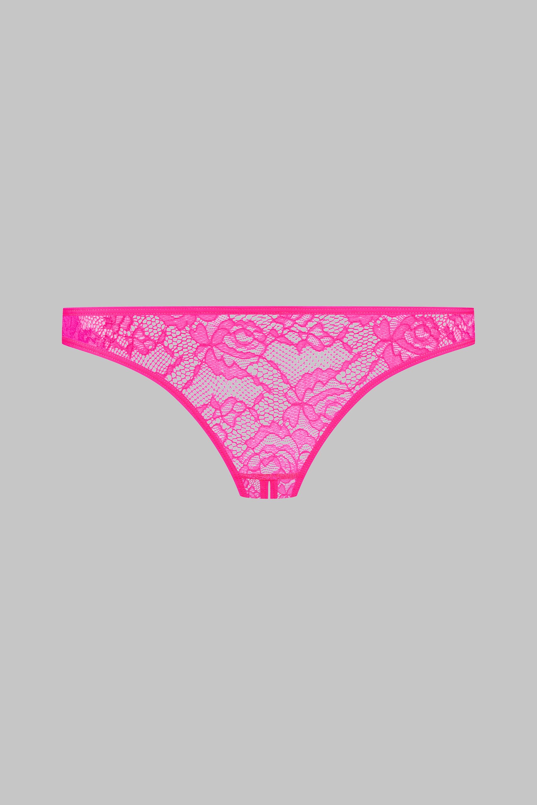 These neon-coloured open briefs feature mostly recycled openwork lace. Alongside a flat elasticated trim, the opening at the back creates a beautiful heart shape to accentuate the buttocks.