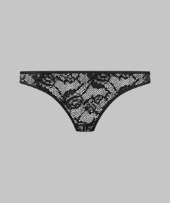 These open panties feature mostly recycled openwork lace. Alongside a flat elasticated trim, the opening at the back creates a beautiful heart shape to accentuate the buttocks. Lingerie to match all the lingerie tops in the Flashback collection or on its own for a minimalist look.