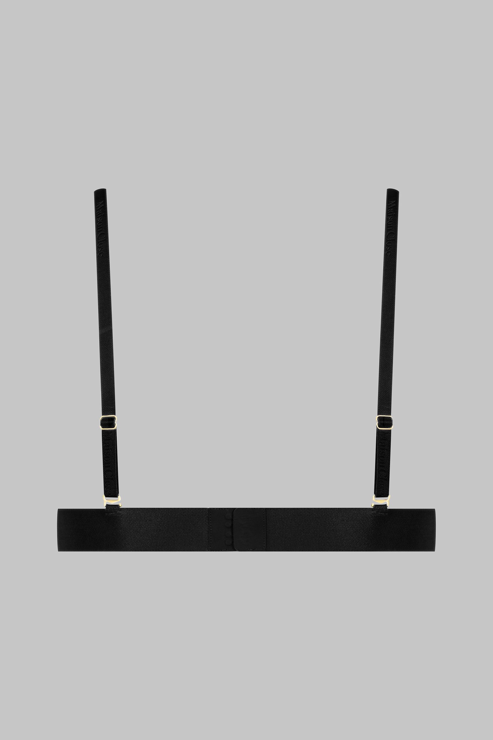 This triangle bra without underwiring features mostly recycled openwork lace. Signature adjustable and removable straps with gold accessories. Swap whenever you like with any other Signature straps available in various colours. An opportunity for each Muse to create their own unique mix and match. Fastens at the back with a smooth, subtle adjustable clip.