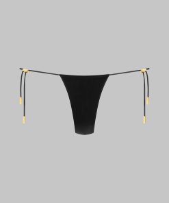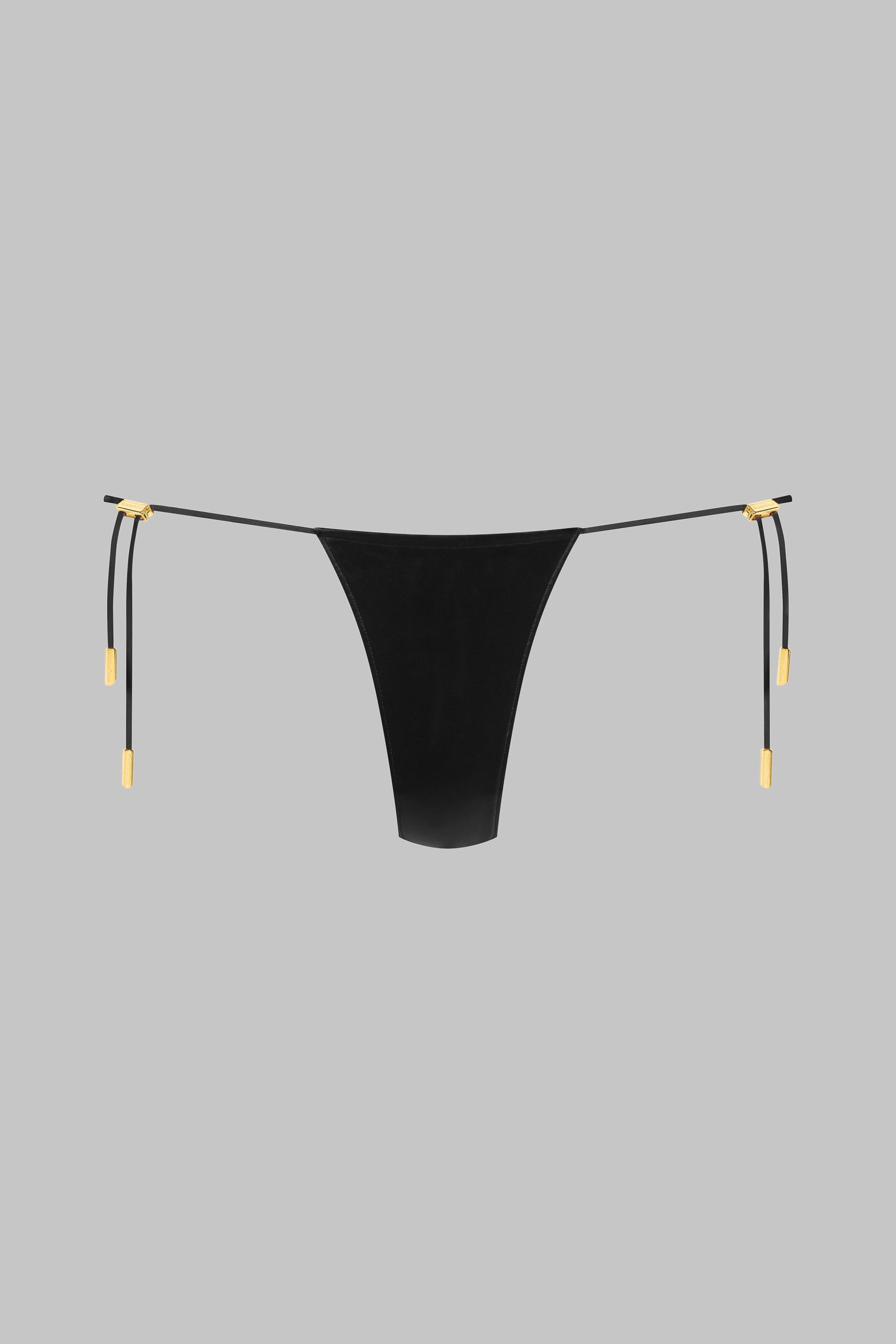 Mini thong, combining satin softness and a must-have iconic cut. Delicately pleated at the front and back, it offers an elegant fit. The lacing detailing at the sides is adjustable thanks to a unique adjuster and gold lipstick accessories by Maison Close to adjust as you wish!