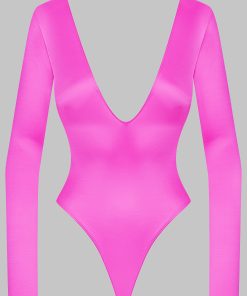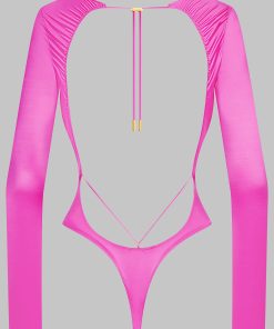 Long-sleeved high-cut thong body, combining satin softness and unique style.