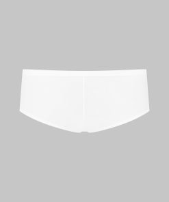 Low-rise mini shorts with a unique feel. Stretchy, ultra-soft, lightweight ribbed modal that stretches and has a sheer, shiny sheen. Elasticated tunnel waistband. This garment has an ’80s look with rounded slits on the sides to accentuate the figure.