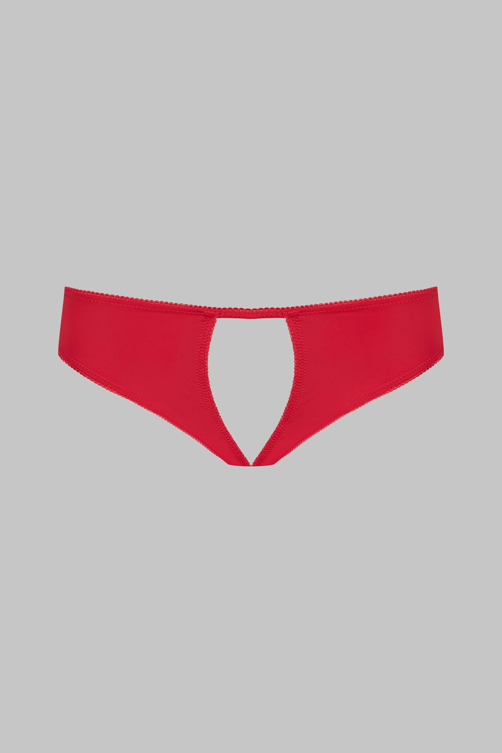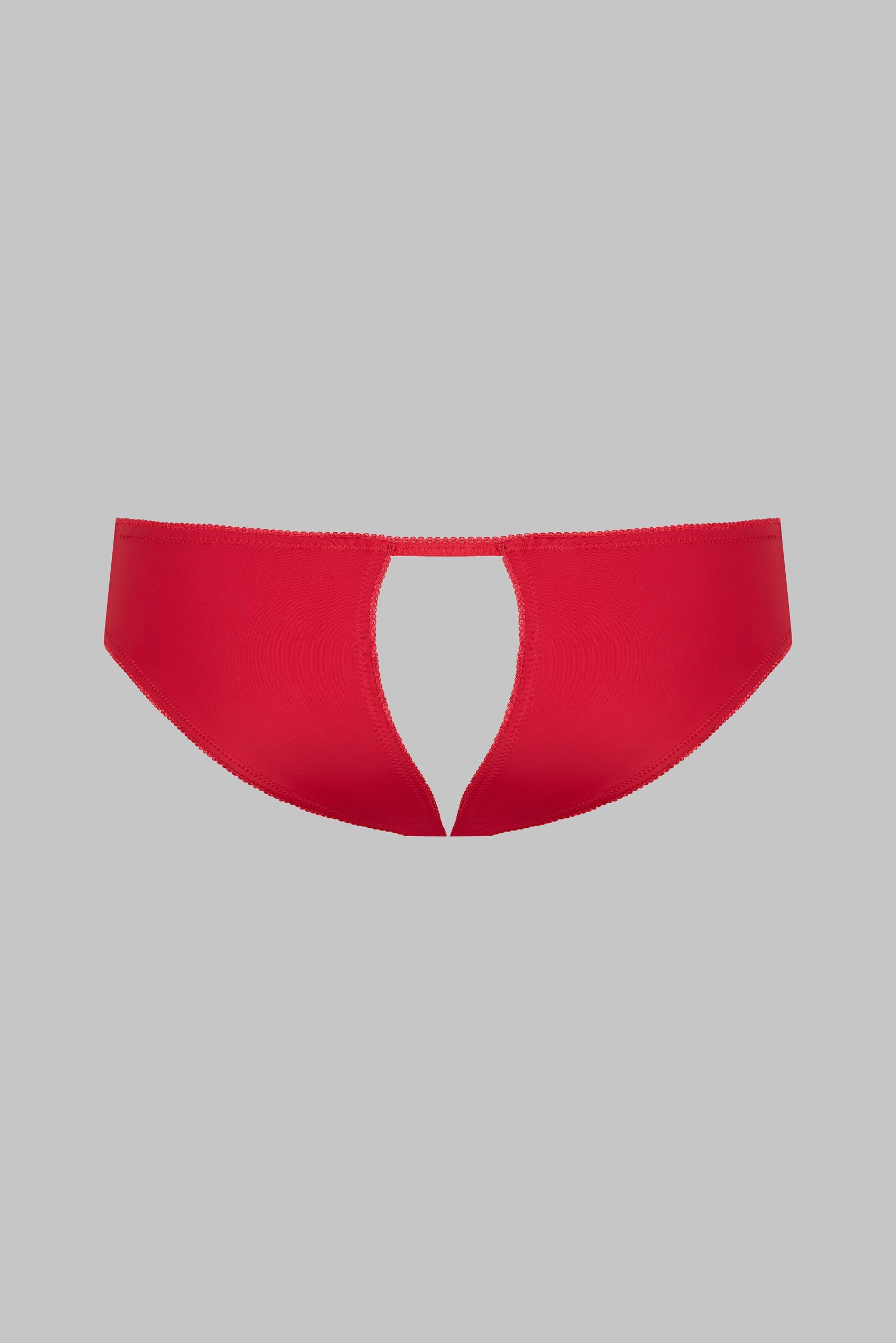 Open opaque microfibre briefs with elasticated picot trim. Structured design with two open pieces from front to back.