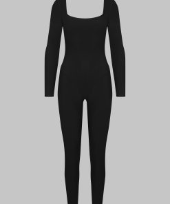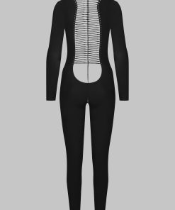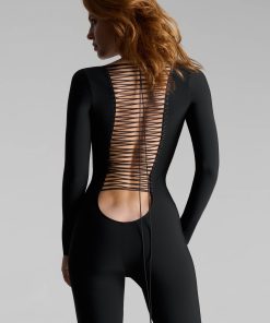 This backless catsuit from the Nuit Infinie collection stands out with its plunging neckline and tailored lines. The adjustable back lacing, secured with a regulator, ensures a precise fit while emphasizing the body’s natural curves. Tapered legs and long sleeves complete its refined and timeless style.
