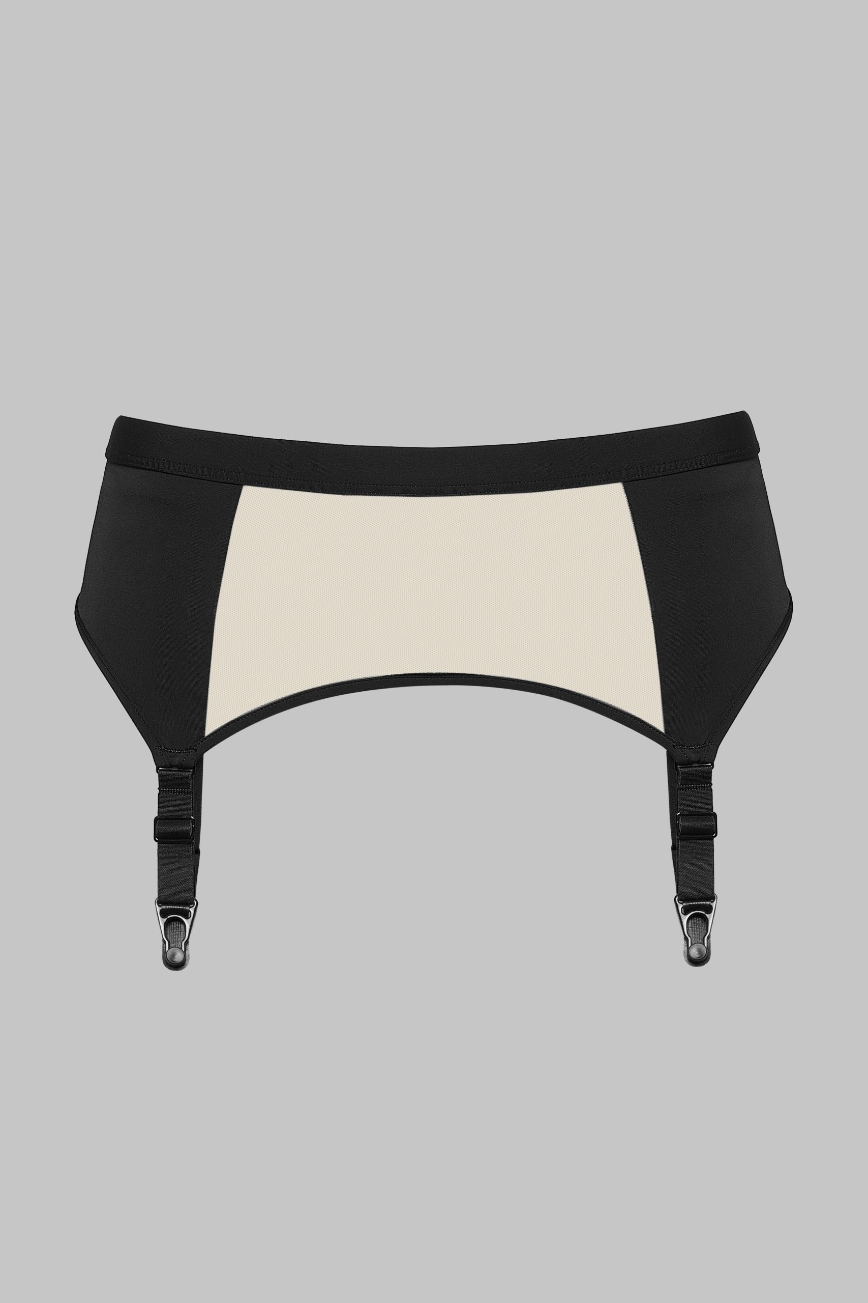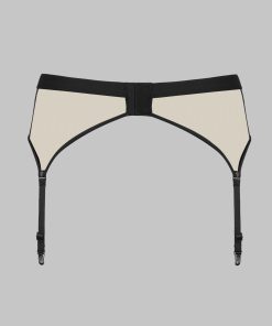 The garter belt Pure Tentation wears like a statement of character. Its two-material construction, blending sheer tulle and opaque microfiber, creates a subtle contrast. The elastic waistband ensures a flexible, comfortable fit, while the fine, non-removable adjustable garters extend the body’s line down to the accessories. Fastens at the back with a hook
