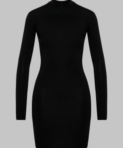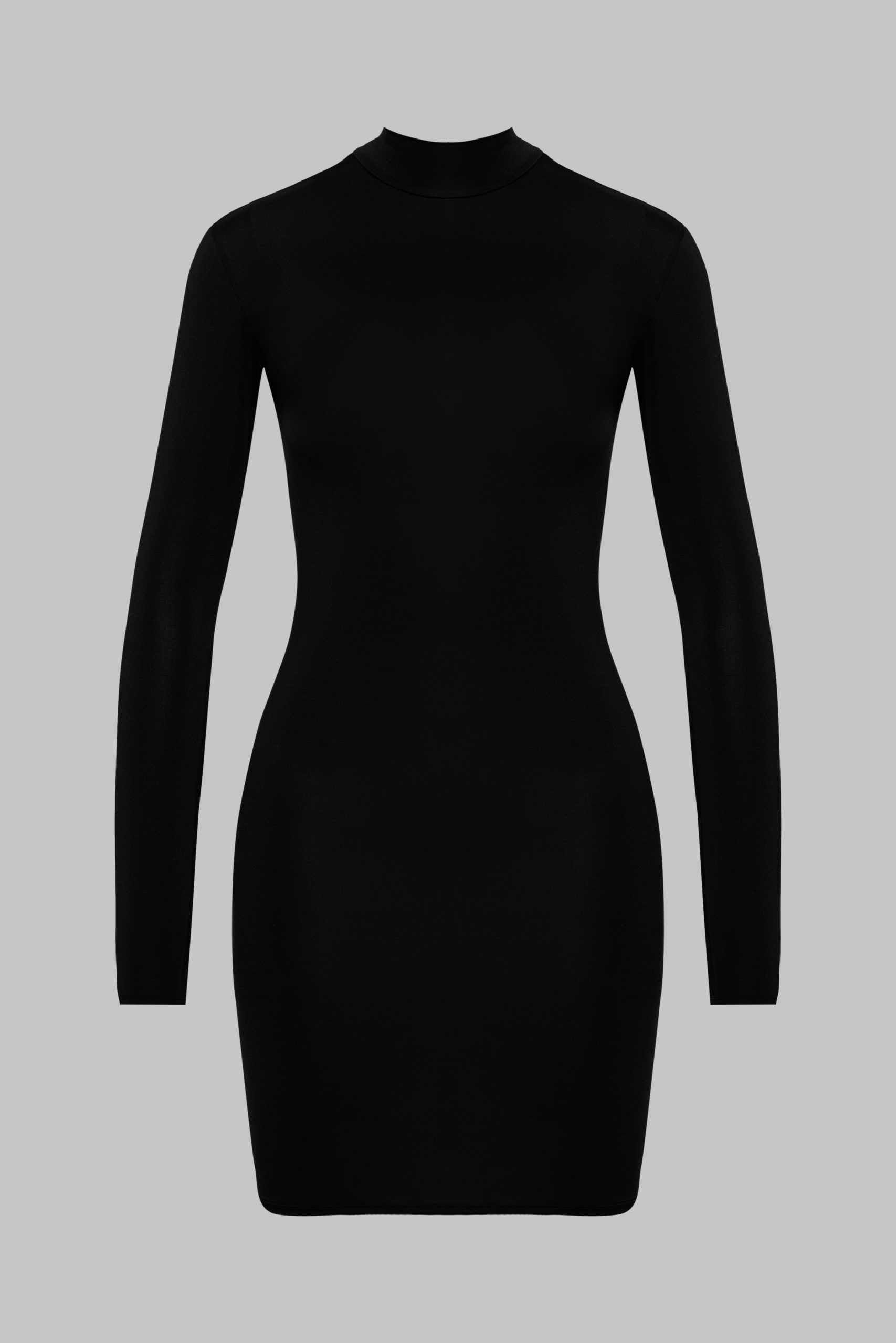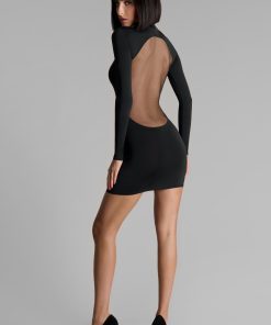 The Minuit long-sleeve dress – Pure Tentation wraps the body in a veil that’s both graphic and airy. Its two-material design, with sheer tulle and opaque microfiber, plays on subtle contrasts, revealing the silhouette in a perfectly balanced way. The high neck defines the neckline, while the ultra-sheer back blurs the boundary between garment and skin. Its short, Minuit-length cut lets the legs appear with lightness.