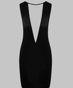 The V-neck Minuit dress – Pure Tentation is a piece of pure suggestion. Its short cut leaves the legs bare, while the deep V-neckline and ultra-sheer back rewrite the rules of seduction.