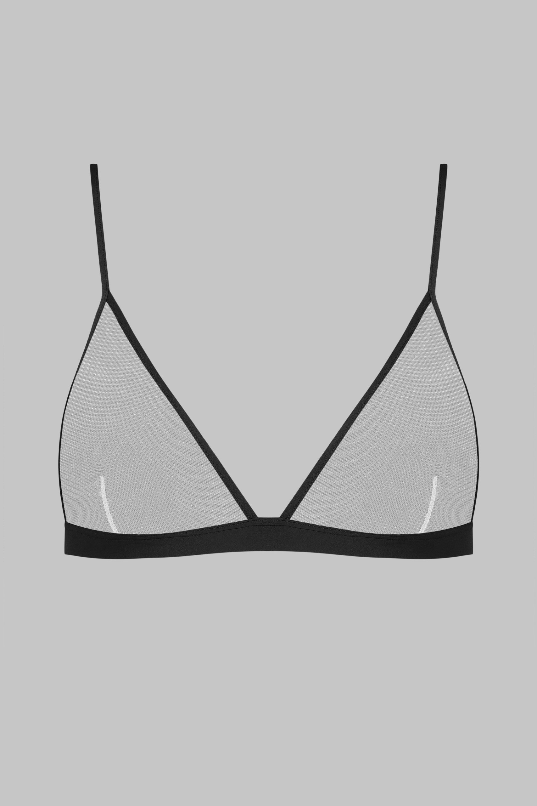 The triangle bra – Pure Tentation reveals the body with intentional delicacy. Its two-material construction blends sheer tulle over the bust with opaque microfiber cutouts. Wireless, it offers a second-skin feel, enhanced by bust darts for a naturally tailored fit. Thin straps are adjustable, and it fastens discreetly at the back with a hook-and-eye closure.