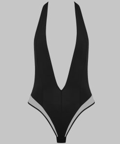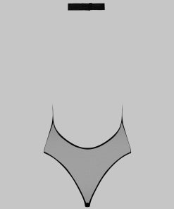 The V-neck thong bodysuit – Pure Tentation explores contrasts. Its cut enhances the figure with a plunging V-neckline at the front and an ultra-sheer back scooped down to the small of the back. Made from light tulle and opaque microfiber, it plays with layering and illusion. A discreet hook-and-eye closure at the crotch ensures comfort, while a back neck opening makes it easy to slip on. Cotton lining at the crotch.